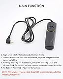 Remote Shutter Release Cable for Canon 850D/T8i, T7, 800D/T7i, 1300D/T6, 750D/T6i, 760D/T6S, 1200D/T5, 700D/T5i, 650D/T4i, 1100D/T3, 600D/T3i, 550D/T2i, 500D/T1i, 350D/XT, 400D/XTi, 1000D/XS, 450D/XSi, 200D/SL2, 60D, 60Da, 70D, 77D, 80D, 90D, M6, G1X, G1X MARK II, G1X MARK III, SX50 HS, SX60 HS, SX70 HS, R, RP, R6, R6 Mark II, R7, R8, R10, R100, M6, M6 Mark II, M5 Replicates all shutter release button functions Control Autofocus and Shutter Release, Capture Images without camera shaking Halfway pressing for auto focus, complete pressing takes the picture, lock the button for long exposures or continuous shooting No Battery Required - Powered by Camera