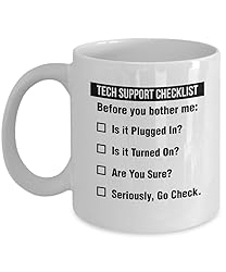 Funny Tech Support Checklist Helpdesk Hotline Coffee & Tea Gift Mug, Gifts for Men & Women Technical Support Engineer, Computer Geek or Nerd and Help Desk (11oz)