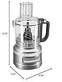 All-in-one storage solution stores all blades and discs directly in the bowl Snap-and-go, easy-clean work bowl with a twist-free, one-click bowl assembly and latched lid; Add warm water and 1-2 drops of dish soap in the leak-resistant bowl to quickly clean bowl and blades Chop, shred, slice and puree everything from fresh veggies to cheeses, sauces, salsa and so much more with the included multi-purpose blade and reversible slice/shred disc Reduce prep time with the 2-in-1 feed tube and process a variety of ingredient shapes and sizes - tomatoes, cucumbers, potatoes and more Simple controls with 3 speeds (High, Low and Pulse) to handle a variety of ingredients with precision. The easy-press paddles and illuminated LED controls make operation simple Model KFP0718 includes (1) 7 cup work bowl, (1) Lid, (1) Multi-purpose blade, (1) Reversible medium slicing/shredding disc