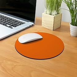 Non-Slip Round Mousepad, FINCIBO Solid Orange Mouse Pad for Home, Office and Gaming Desk