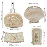 HotSan bathroom accessory Set, 5 PCS Beach Seashells Ensemble Set Includs Soap Dispenser, Soap Dish, Tumbler, Toothbrush Holder - Ivory Polyresin Set for Home, Office, Superior Hotel