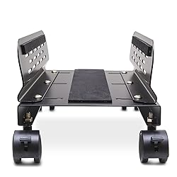 Adjustable computer stand is designed to support and elevate most desktop/tower style computers. Increases airflow and saves desktop space by storing the CPU underneath or beside your desk Locking and swiveling casters provide mobility and stability. Rolls for easier access to back of the computer Rubber pads on Clamps provide a firm grip on your slim PC or UPS and protects it from scratching and scuffing Width is easily adjustable from 3.8" To 7" (9.7 cm to 18 cm) to hold most computers, No tools needed Base plate dimensions: 7.4" To 10.6"