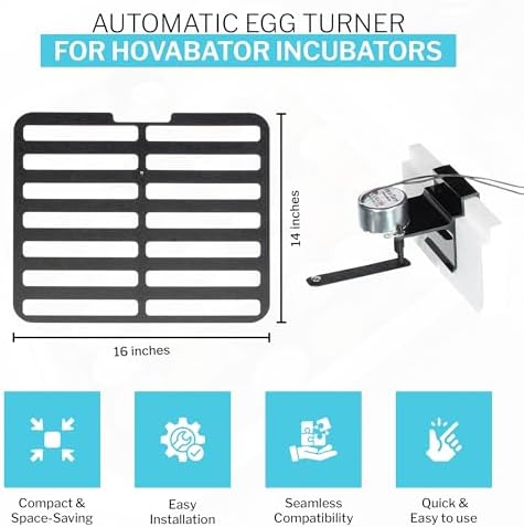 - 𝐔𝐍𝐈𝐕𝐄𝐑𝐒𝐀𝐋 𝐂𝐎𝐌𝐏𝐀𝐓𝐈𝐁𝐈𝐋𝐈𝐓𝐘: The automatic egg turner is designed to fit all current HovaBator desktop incubators. This universal design means that users do not need to purchase a new incubator to use the egg turner, saving money and time. It allows for easy integration into existing setups, making it a convenient upgrade for Hovabator incubators.