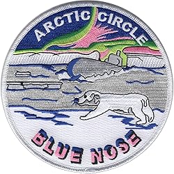 - United States Navy Blue Nose designation for Sailing above Arctic Circle Military Patch * Height: 5.00 inches, Width: 5.00 inches * Shape: Round * Edging: Merrowed Edge * Iron On