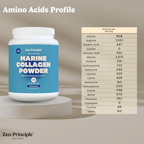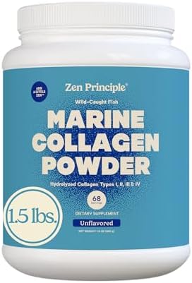Zen Principle Marine Collagen Peptides Powder 1.5 lb. Wild-Caught Fish, Non-GMO. Supports Healthy Skin, Hair, Joints and Bones.Hydrolyzed Type 1 & 3 Protein. Amino Acids.Unflavored, Easy to Mix.