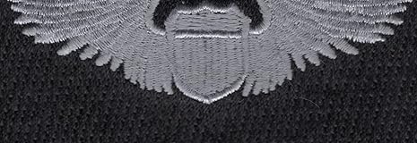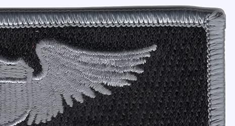 - Air Force Pilot Patch Wings Military Silver/Black. Wings positioned at the top to allow room for a name to be embroidered on the patch. * Height: 2.00 inches, Width: 4.00 inches * Shape: Rectangle * Edging: Merrowed Edge * Iron On Endorsement by the United States Air Force is neither intended nor implied.