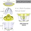 - 【Premium Quality】Lemon Squeezer Citrus Juicer Manual Space Saving Kitchen Tools is made of food grade ABS material, BPA-Free and food grade stainless, Anti-Slip Non-Marking Silicone Base, to make sure that can be lasted for a long time.