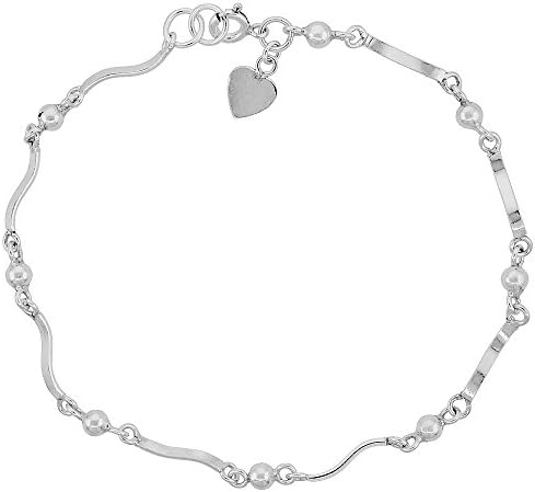 1/8 inch wide Sterling Silver Wavy Bars and Beads Charm Bracelet for Women 3mm fits 7-8 inch