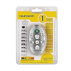 - CHUNGHOP RM-L7 is a mini learning remote control which copies all the functions from your IR original remote of different types and different brands except some special remote control keys. Package List:1*Remote Control ( No Batteries ) and 1*instruction Features of RM-L71. Provided 7 keys for free learning, it will make your life more convenient!2. Adopted digital circulation learning technology, it will make the learning process be fast and accurate.3. Apply to multiple home appliance remotes, it can learn from the remote controls for TV VCR CBL DVD VCD CD SAT.4. Permanent memory retention, it is not required to reset after battery replacement.How to set remote control:1. Press and hold "Set" key until the indicator light is on, and then release.2. Place RM-L7 & the original remote head to head 1 inch.3. Press the key you want to learn on YOUR Original Remote and RM-L7’s indicator light will flash quickly.4. Press the CORRESPONDING key on RM-L7, the indicator light will be on.5. Repeat steps 3 & 4 for other keys you want to learn.6. Press "Set" key again to exit, and the indicator light will be off. NOTICE:1. Please make sure that your original remote is IR remote and must work well, or RM-L7 CANNOT learn from your original one.2. Any questions during using or if you are not sure that our remote control fits for your original one, please feel free to contact us, we will resolve the problem at the first time.