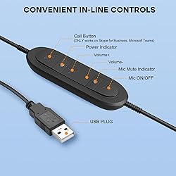 - MKJ USB headset with microphone is comforable for the regular use on laptop or computers. This wired headphone features acoustic shock protection to protect user's hearing, and noise cancelling microphone to filter out unwanted background noise, delivering clear voice. Save you from back pain and fatigueHolding a phone handset up to one ear leads to poor posture, which over time causes many people to suffer from neck and back discomfort. USB headset with microphone improves work productivityA professional phone headset with microphone allows you to use both hands on your computer or take notes while talking. Wearing a headset enables the microphone to stay in the same position as you move your head and speak, so your voice stays consistent. Crystal Clear SoundClear voice transmission is very important during phone calls. This landline telephone headset use wideband audio technology to improve speech clarity and feature with noise cancelling microphone to filter out most background noise. Its excellent sound quality gives users the feeling they're having a "face to face" communication.Product Description: Wideband headset delivers the highest level of audio performance, ideal for VoIP communication and music listening Plug and play, connecting with PC and compatible with Mac/Windows systems Compatible with Skype, Skype for Business and Microsoft Teams and other unified communication systems With digital Signal Processing (DSP) technology, digitally optimizes your voice and music and suppresses echoes Lightweight and ergonomic deisgn to help ensure maximum comfort and performance for all day use
