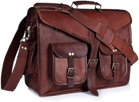 This 17.6-inch laptop messenger bag combines vintage canvas with leather accents in an attractive coffee brown color. The water-resistant construction protects electronics and documents from light exposure to moisture. The spacious main compartment accommodates larger laptops while additional pockets provide organized storage for accessories and essentials. With its professional briefcase styling, the bag features both a comfortable leather shoulder strap and durable handles for versatile carrying options. The classic design makes it suitable for business settings while offering practical functionality for daily use.