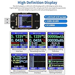 [New upgrade]: The product supports two-way insertion detection, increases the current direction to indicate the direction, with a 1.44-inch large LCD screen, 4 operation buttons and 5 connection ports. The plug with gold-plated USB contacts has a strong coating to prevent scratches, stains and damage 【Wide range of applications】: It can measure all kinds of USB chargers/PC/laptop/desktop computer/mobile phone/power bank/charger/discharge load/car charger/cable. Support Type-C interface full digital compatible PD protocol/Qualcomm QC3.0/4.0 protocol One table is compatible with multiple protocols, fast charge supports PD QC2.0 QC3.0/4.0 MTK and other protocols [New reminder function]: Temperature alarm: over 45°C, the temperature display will flash; Voltage alarm: less than 3.8V or greater than 30V, the voltage display will flash; Current alarm: greater than 3A, the current display will flash [Flexible color display interface]: Supports 360-degree rotation of the screen to meet reading at any angle. You can rotate the screen by pressing the button corresponding to the horizontal menu bar. When plugged into various digital devices at any angle, positive readings can also be made, making the measurement more convenient [Powerful after-sales service team]: As long as you have any questions about the product, we will solve your problem as soon as we receive your email. Your satisfactory purchase experience is our greatest hope! How to email us? Please click "MakerHawk-US" and click "Ask a Question" to email us! Looking forward to your consultation! [Note] : When PD power is not connected to the fast charge device, the power is not supplied by default. After the TYPE-C PD is inserted, the test screen is not on. 1. Flip the TYPE-C connector 2. Our built-in TYPE-C interface is used for connection and TypeC interface charger is used. According to the protocol, no load is connected and no power is supplied by default