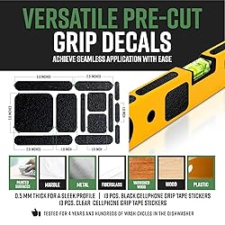 Rubber MULTI-PURPOSE ADHESIVE PHONE GRIP TAPE. Enhances control & comfort on nearly any surface. Whether you're looking for better grips on your gaming controller, laptop, keyboard, knife, or need a gun grip tape for pistols, it’s got you covered. TEXTURED NON-SLIP HANDGUN GRIP TAPE. Dragon Grips laptop and mouse grip strips apply easily to any smooth surface, providing enhanced control even with sweaty hands. Ideal gamer grip tape for mouse precision, including drag-clicking performance. EASY TO CLEAN, WATERPROOF CELL PHONE GRIP TAPE. Made of textured grippy PVC rubber with pressure-sensitive adhesive for an easy peel-and-stick application. This grip for phone case is compatible with iPhones and waterproof on smooth surfaces. PRE-CUT RUBBERIZED GRIP TAPE FOR PHONE CASE AND MORE. This 0.5mm non-abrasive grip tape is thin, durable, and perfect for small items like keys or buttons. Great phone case grip tape that wraps around curved edges with ease. 100% MADE, MANUFACTURED, AND PACKAGED IN THE USA. Dragon Grips is a small, family-owned business based in Kentucky. Both Dragon Grips and Bright Knight reflective griptape stickers are proudly made in the USA.