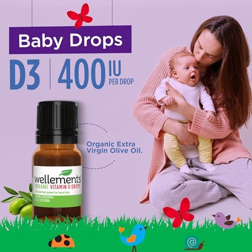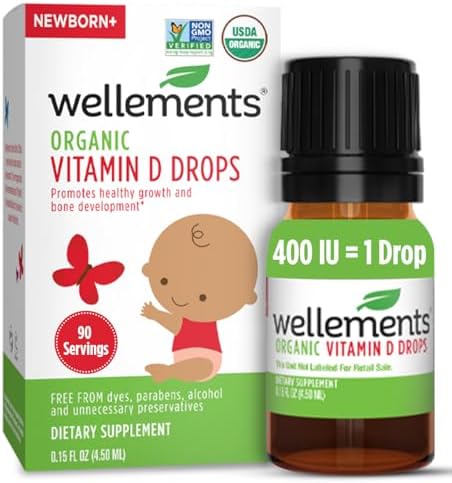 Wellements Baby Organic Vitamin D Drops for Infants & Toddlers (90-Day Supply) - Certified Newborn+ Liquid Vitamin D3 Drops, Support Healthy Growth & Bone Development 400 IU per Drop (1 Drop Daily)