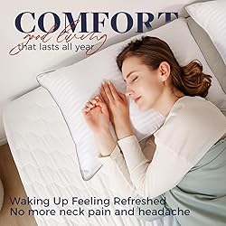 COMFORT AND SUPPORTIVE: This down alternative pillow is filled with premium polyester blend fiber which makes the pillows provide better softness and support. The bed pillow cover made of 100% peach skin shell to keep it soft and breathable KING SIZE PILLOWS: Measures 20 x 36 inches, certificated by Oeko-tex. Perfect for side sleepers, back sleepers and stomach sleepers. Enjoy a comfortable night's sleep with these luxury hotel pillows SOFT AND FLUFFY: The king pillows 2 pack are vacuum packed. The pillow will fluff up quickly after opening the package. You can push it in-and-out to make the firm pillow return to its original shape STYLISH DESIGN: The soft pillows for sleeping adopts exquisite straight stripe jacquard design craftsmanship. It is also a great decoration for your bedroom. These king pillows can be an enchanting and valuable present to your family or friends MACHINE-FRIENDLY: Regular machine wash to keep the bed pillows clean and fresh. Machine wash in cold water on gentle cycle, and simply sun-dry or tumble dry on a low heat setting