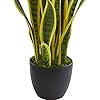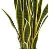 Bring a unique and bright look to your home with this artificial sansevieria plant. The flat Green leaves are striped and have a ring of yellow lining the outside, making this a great statement piece. Standing at just 26", it's the perfect size to accent nearly any space! place it on your kitchen island next to your favorite bowl of faux or real fruit and a few of your favorite small faux succulent for a fun and fresh finish.