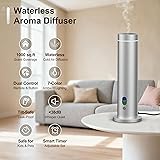 Maromalife Waterless Diffuser, 1000 Sq.Ft Coverage, Essential Oil Diffuser with Tilt-Safe, Remote Control, Adjustable Mist, Mood Lights Aromatherapy Diffuser for Home, Room, Office, Hotel, Silver