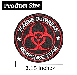- 💘The ZOMBIE OUTBREAK RESPONSE TEAM Patch Made of 100% embroidered threads. 🍀Top Quality patch.Comfortable,durable,tough,easy to remove and wash. 🔥Zombie Outbreak Response Team Patch makes you more fashionable and makes you the most unique in the crowd. It's also the best gift for friends, family, lover.Birthday present, christmas present, new year gift. 😇APPLICABLE OCCASION: hook & loop backing for sew-on application or easy attachment to tactical backpacks, caps, hats, jackets, pants, and gear etc. Patch Comfortable, durable, easy to remove and wash. Great decoration for outdoor activities, or just for your collection hobbies 😘Size:3.15" In Diameter. Material: 100% High Embroidered Quantity:1PCS Zombie Outbreak Response Team Patch Backing: hook and loop fasteners backing 😜Our hook attachment backed patches compliment any tactical gear with loop attachment.