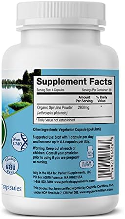 Perfect Supplements – Perfect Spirulina – 120 Vegetable Capsules – Organic Spirulina Supplement - Whole Food Micro Algae - Immune System Support