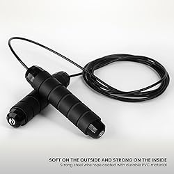 THE MOST COMFORTABLE HANDLES. Our jump rope handles are made of durable & comfortable EVA foam that provides a strong grip even after sweating for a long period of time. Burn calories, slim down and skip rope to your heart's content. EXTRA LONG JUMP ROPE. Adjustable plastic jump rope from 9.8 ft down to your desired length! All ages (Adults, Men, Women, Children, Kids, Boys and Girls) can use this jump rope. Just follow the sizing instructions included in the package. LIGHTWEIGHT & PORTABLE. This jumping rope is easy to carry and easy to bring outdoors or to your gym. Make the most out of your cardio or HIIT routines by adding 10 minutes of warmup with this jumprope and see the huge difference it can make! SMOOTH & EFFORTLESS SPINS. Our adjustable jump rope's unique ball-bearing system makes each jump smoother. This skipping rope is easy to untangle and flatten out after every use, making this perfect for both beginners and professionals. NEXT-LEVEL AEROBIC EXERCISES. This portable jump rope can be used for boxing, aerobic exercises, jumping, speed and agility training, jogging and other lower-impact activities. Improve your flexibility and core strength with skipping and jumping exercises.