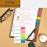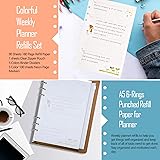Rancco A5 Planner Inserts Weekly Planner Refills, 90 Pages Colorful 6-Ring Loose-leaf Paper Binder Inserts w/Divider, PVC Pouch, Ruler, Index Tab for Journal, Filofax, Double-sided, Undated, 8.3x5.6"