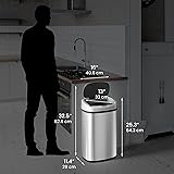 100% Touchless – Just the motion of your hand opens the lid automatically! It’s the hygienic and convenient choice. PROVEN SENSOR DURABILITY — Industrial-grade sensor lab-tested for 150,000 cycles (simulating up to 20 years of typical use). Features Smart Reflex technology to prevent accidental closure; actual lifespan may vary based on usage and maintenance. TRUE ODOR ELIMINATION — Our specialized AbsorbX Carbon Filter neutralizes trash odors before they escape, keeping your kitchen air fresh and clean (1 filter included). SLEEK, SMUDGE-PROOF STAINLESS STEEL FINISH — The fingerprint-resistant oval body stays spotless and stylish. Blends seamlessly with any home or office décor. DUAL POWER FLEXIBILITY — Choose between cord-free operation with 4 D-Size batteries (not incl.) OR use the optional AC Adapter (sold separately) for battery-free use. EASY BAG & BULKY TRASH USE — Designed to fit standard 13 Gallon bags perfectly with a retainer ring, plus an extra-wide opening for pizza boxes and oversized waste. PREMIUM HANDS-FREE SENSOR TECHNOLOGY — Wave your hand to open the lid instantly. Hygienic, touch-free convenience ideal for kitchens, bathrooms, and homes with kids or pets. ADA- AND OSHA-COMPLIANT DESIGN FOR SAFER SPACES — Touchless, motion-activated lid supports ADA accessibility standards. Ideal for offices, clinics, and other environments requiring hygiene and hands-free use. VERSATILE PLACEMENT IN ANY ROOM — Use it in kitchens, bathrooms, laundry rooms, offices, or nurseries. The elegant oval shape fits discreetly into any corner. DIMENSIONS – 11.4 inch Length x 16 inch Width x 25.3 inch Height (32.5 inch Height with lid open) RESPONSIVE U.S.-BASED CUSTOMER SUPPORT — Our support team is based in the U.S. and ready to help with setup, troubleshooting, or product guidance.