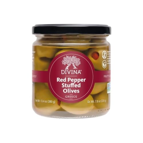 DIVINA Red-Pepper-Stuffed Olives, 13.4 oz, 1-Pack