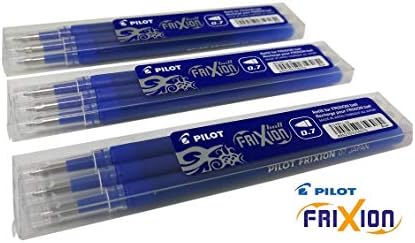 Recargas para bolígrafos borrables Pilot Frixion, paquete de 9, tinta gel azul de punto fino 07 (Azul)