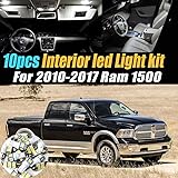 10Pc Super White 6000K Interior LED Light Bulb Kit Pack Compatible with 2010-2017 Dodge Ram 1500