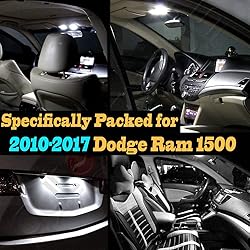 - Product Details Name: 10Pc Super White 6000K Interior LED Light Bulb Kit Pack Compatible with 2010-2017 Dodge Ram 1500 Color Tempurature: White (6000k) Fitment Type: Direct Replacement Voltage: 12V Application: Designed for 2010-2017 Dodge Ram 1500 Lifespan: 30,000 working hours Warranty: 1 year. Free replacement for manufacturer defect for 1 year. Item location: Monrovia, California, 91016 Package include: Map lights, trunk lights, glove box lights, license plate lights and 2pcs spare lights Please note that the led bulbs on this listing are NOT Canbus (error free) bulb. *It's easy to tell if your car needs CanBus or standard LED bulb: Simply plug out one of the bulbs in your car, and if you see a "bulb out" or similar message pop up on your dashboard screen, then your car has advanced computer system and needs CanBus LED bulb. Why LED? LED bulbs have lower energy draw with higher lumen output than any halogen bulbs. LEDs also have longer lifespan and gives vehicle a clear, clean and modern look. What's CanBus (error free) Led? CanBus (Controller Area Network BUS) LED bulbs are specifically made for CanBus-equipped cars. These bulbs are designed to work with car's advanced computer system so that when a bulb is installed in the vehicle, the car dashboard screen will not pop up error message ( and thus "error free"). It's easy to tell if your car needs CanBus or standard LED bulb: Simply plug out one of the bulbs in your car, and if you see a "bulb out" or similar message pop up on your dashboard screen, then your car has advanced computer system and needs CanBus LED bulb. CanBus LED bulbs should NOT be used in non-CanBus cars because it may cause problem in the car's electrical system.