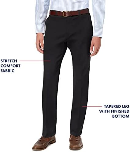 Experience the perfect blend of style and comfort with Tommy Hilfiger Men's Classic Stretch Chino Pants. Designed with a modern fit, these chinos provide a sleek silhouette with ample room in the hips, seat, and thighs, making them ideal for both work and casual wear. Crafted from a high-performance fabric blend of 78% rayon, 19% nylon, and 3% spandex, these pants are wrinkle-resistant, water-resistant, and machine-washable, ensuring effortless maintenance and lasting durability. Featuring a versatile flat front, finished hem, and no cuff design, they offer timeless sophistication and adaptability for any occasion. Enjoy all-day comfort with a stretch elastic waistband and a secure zip fly with button-and-hook closure, all while embracing Tommy Hilfiger’s celebrated American cool style.