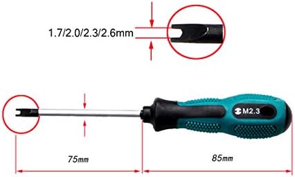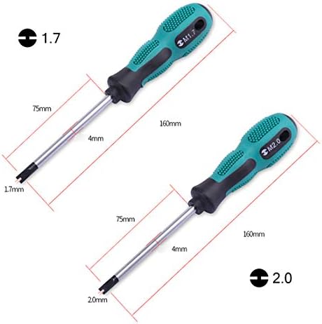 100% new and high quality Product Name : Screwdriver Set; Tip Type : U Type Spanner Screw Screw Head Size: 1.7mm/2.0mm/2.3mm/2.6mm; Handle Size : 8 x 2.5mm / 3" x 1"(L*D) Material: Chrome Vanadium Steel (CR-V), Plastic,Rubber; Total Weight : 180g Total Size : 13x 2.5cm/5" x 1"(L*D);Color : Black, Silvery Package Include: 4 x Screwdriver Excellent toughness and hardness performance Handle hanging hole design for easy storage and carrying Its handle is comfortable to hold, effective slip resistance, suitable for long hours of operation
