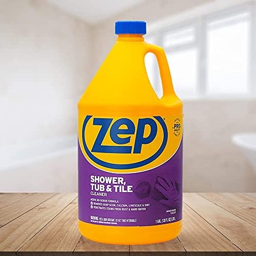 Zep Shower, Tub and Tile Cleaner - 1 Gallon (Case of 4) ZUSTT128 - No Scrub Pro Formula with Acid, Breaks Up Tough Buildup on Contact, Revealing Squeaky Clean Results