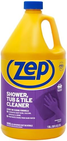 Zep Shower, Tub and Tile Cleaner - 1 Gallon (Case of 4) ZUSTT128 - No Scrub Pro Formula with Acid, Breaks Up Tough Buildup on Contact, Revealing Squeaky Clean Results