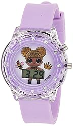 Flashing LCD dial illuminates with a fun light show at the press of a button, making time-telling exciting for kids Glitter silicone strap provides a comfortable fit with an adjustable buckle, perfect for everyday wear Clear rhinestone bezel adds a sparkling touch to the watch, making it a stylish accessory for any LOL Surprise! Fan Easy-to-read digital display helps kids quickly check the time, encouraging independence and time management Adjustable wrist size from 5.5" to 8", ideal for growing kids