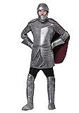 COSTUME INCLUDES: This Knight Costume for adults comes with a metallic tunic, foam body armor with an attached cape, a foam knights helmet, knee high foam shoe covers, foam elbow pads, and foam gauntlet gloves. FROM FUN COSTUMES: We think costumes are a big deal and we aim to craft an awesome outfit for every costume occasion! This knight warrior costume is a armor outfit with a tough and rugged look with an incredible design that looks great even though it's made of foam and not forged metal. GREAT DESIGN: When you want to be a medieval warrior then this knight costume for men will be perfect. Each of the foam costume pieces has the look of metal armor and the metallic tunic looks like amazing chainmail. It even has a bold red so that you can cosplay as the bravest knight in the kingdom! QUALITY COSTUME: The quality of this knight armor outfit is evident when compared to a typical Halloween costume. The armor pieces have durable foam backing and fit with elastic and hook and loop fasteners. Along with the metallic tunic it can be worn for Halloween and for medieval cosplay again and again. Polyester foam helmet has hook and loop fastener on the back