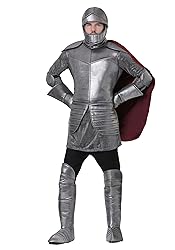 - The Fun Costumes Knight Armor Costume for Adults We aim to provide great historical costume options whether for plays or performances, for Halloween, or just for costume fun! This medieval costume for men takes its inspiration from the amazing armor suits worn by knights in the medieval ages. When you're ready to bring history to life with this knight armor outfit you're going to feel like the bravest knight in the kingdom! Product Design: If you are ready to defend the kingdom all you need is an armor set from the blacksmith, and our Adult Royal Knight Costume is sure to be just the thing. This detailed costume looks like serious medieval armor, but it's soft, plush polyfoam that's sure to be much more fun than wearing a metal suit. It includes a silver mesh tunic and a complete set of foam-backed armor pieces covering the torso and the elbows, hands, and feet. A realistic knight helmet and a red cape attached to the shoulders complete the outfit for a costume that's easy to wear even without a squire! Product Details: 100% polyester Metallic tunic is a pullover with a button and elastic at the top back side Polyester foam body armor has hook and loop fastener down center back side Cape is attached to the body armor Polyester foam helmet has hook and loop fastener on the back Boot covers have elastic band to fit under shoe Elbow pads have elastic band attached Gauntlets are one size fits most About Us: Fun Costumes are exclusively made by us and begin with passion, teamwork, and industry expertise decades in the making. Our products are proof that with the right people even a simple idea can grow into something incredible. We started in a small garage in Minnesota, providing costumes to our local community, and now we're creating costumes for people all around the world.