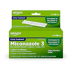 Amazon Basic Care Miconazole Nitrate Vaginal Cream (4 Percent), 3-Day Yeast Infection Treatment for Women with Prefilled Applicators, 0.18 ounce, 3 count