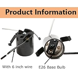 UL&CSA listed bakelite medium E26 light socket with 4" wire leads. Nice replacements for our ceiling fan/light fixture bad sockets,Perfect light sockets for many home projects Ideal for standard screw E26 light bulb bases( incandescent lamp, fluorescent lamp, LED bulb) Rating :250V 660W, Wire spec :MIN, 600V 18AWG Material :Phenolic+Metal,Overall height :38mm