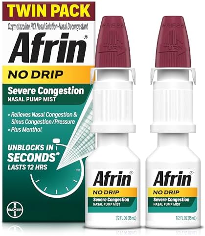 - Ridiculously Fast Relief: Unblock your nose in seconds with Afrin No Drip Severe Congestion Nasal Mist, a fast-acting nasal pump mist decongestant providing sinus pressure and congestion relief with cooling menthol in a convenient twin pack