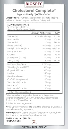BIOSPEC NUTRITIONALS Cholesterol Complete - Natural Cholesterol Support for Cardiovascular and Heart Health* - Red Yeast Rice, CO-Q-10, Hawthorn, Magnesium (240 Tablets)