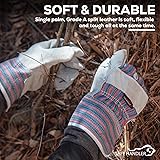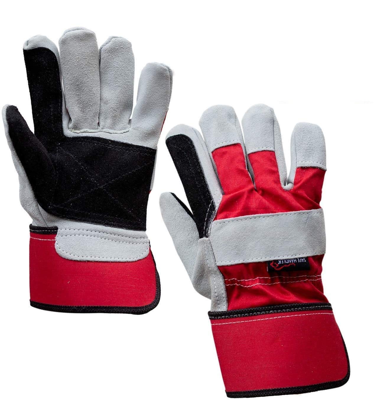 SAFE HANDLER Work Leather Gloves, AB Split Leather, 3 Pairs EXTRA PROTECTION: Reinforced palms and knuckles are utilized for additional protection, offering you more comfort throughout the work day. An extra pasted cuff is located near the wrist for improved safety. SOFT, DURABLE MATERIAL: AB Split Leather is a higher quality leather that is soft, flexible and durable all at the same time. This leather is all purpose and very effective when it comes to general protection in work environments or construction zones. The cool, cotton partially lined interior aids in more comfort, better airflow and improved breathability throughout your work glove. LIGHTWEIGHT & VERSATILE: Made for men or women, the last thing you want is heavy gloves when working on machinery or various projects. That’s why these gloves are constructed with light materials for a more versatile function. The thick fabric on the fingers and palm have an excellent grip, allowing you and your employees to easily lift and grasp different tools or objects. VARIOUS ENVIRONMENTS: Ideal for jobs that require light to moderate protection. May be used in industrial, carpentry, construction, and manufacturing environments.