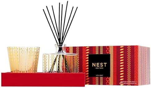 NEST New York Scented Classic Candle (8.1 oz) & Diffuser (5.9 fl oz) Set, Holiday - Reusable Glass Vessel - Vegan, Cruelty Free