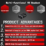 ★★We only make delicate product!★★Multifunctional VR headset for iPhone/Android phone, 3D VR glasses can turn mobile phones into cinemas/3D game halls.With Bluetooth remote controller, the effect is better.(PLEASE NOTE:Some software and games do not support the Bluetooth handle function.This is the reason of the software and has nothing to do with the product.The remote is only applicable to iOS 11.2.5 or lower due to the sealing of the iOS system) ★★Multi-functional Virtual Reality Headset★★Ergonomic Design, more beautiful. Lightweight, comfortable to wear, just for better customer experience HD VR goggles, aspherical lenses, using a new generation of nano-lenses, ensure the transmittance of the lens, effectively isolate the wavelength radiation, and avoid eye damage. Use explanation: 1.Mobile Phone Download VR app(Recommended: Youtube /Veer/Fulldrive).2.You can search the VR application for the video you want to watch for playback. Or you can use the VR app to play your downloaded videos ( 3D video left and right format).3.Remove the lens film of VR glasses.Put the phone in the VR glasses and place it in the center as much as possible.adjust the headband to the comfortable size. VR glasses top button adjustable pupil and focus distance for optimal 3D viewing user-friendly design,Unique dual lens design, pupil distance and object distance adjustment are available for myopic population. Our model supports naked eye viewing with myopia below 0-500 degrees and direct viewing with myopic glasses. After wearing it, please adjust the left (right) pupil distance to suit yourself.(can also wear myopia glasses,to add a better experience for myopia users) Compatible with 4-6 inch size iPhone and Android phones;vr glasses for iPhone X 8 7 plus / 6s / 6/6 plus; Samsung s9/s8/s8 plus/s7/s7 Edge/s6/s6 Edge Note8/5/4/3; LG g6 g5 g4 g3 v20; and Daydream phones like Google Pixel/Pixel XL, Huawei Mate 9 Pro;Nexus 5, 6P;5;U11 etc.