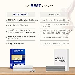 - WHAT COMES IN THE STANDARD/QUEEN PILLOWCASE PACK? Two Cotton Pillow Cases Standard Size measuring 21” x 32” to fit standard/queen-size pillows. WHEN SHOULD YOU OPT FOR 1000 THREAD COUNT PILLOWCASES? If you like heavier, thicker, cooling pillowcase that feels like a superior five-star hotel bedding, then these 1000 thread count standard pillow cases are for you. Don’t be fooled, though—just because they’re heavy, doesn’t mean they’re hot or stuffy. Instead, these oversized plain standard pillow cases 2 are super breathable and cool to sleep comfortably at night. Best for hot sleepers who sweat while sleeping. WHAT MAKES OUR 1000 THREAD COUNT PILLOWCASES BETTER? Our pillowcases standard set of 2 is made from extra long staple cotton that naturally produces softer and more durable fabric. To add to this, we mercerize our queen size pillow cases set of 2 to improve their dye absorbance (so the original color doesn’t fade on wash), reduce shrinkage and pilling, improve brightness and luster of the fabric, and increase durability. ARE OUR PRODUCTS CHEMICAL-FREE AND SAFE TO USE? Yes. Thread Spread’s pillowcovers are STANDARD 100 by OEKO-TEX certified, which means they meet the highest safety standards to ensure there are no harmful chemicals in your bed. This makes them ideal for sensitive skin and kids too. WASH & CARE INSTRUCTIONS: Since these linens are mercerized, they don’t shrink, pill, or fade easily. These small pillow cases need a couple of washes at home to soften. So, the more you wash them, the better. Remove them from the dryer immediately to avoid wrinkles.