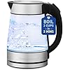 Elite Gourmet EKT-602 Electric BPA-Free Glass Kettle, Cordless 360° Base, Stylish Blue LED Interior, Handy Auto Shut-Off Function – Quickly Boil Water For Tea & More