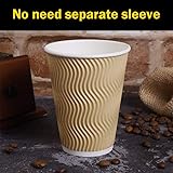 - 12oz 100 counts paper coffee cups,what you will get? -100 packs Paper Ripple Cups.No cup sleeves required for these paper coffee cups have insulated three-layer kraft corrugated. -100 packs Plastic Lids. Tight-fitting lid will keep your coffee warmer for longer and one-handed drinking. -100 packs Straws. For drinking convenience,with them,coffee are all in your mouth and none in your lap,also can be used as stirrers for mixing and cooling your drink. These premium food grade paper coffee cups will not leak or bend,whether you are at Home or On the Go,these paper cups are the best for you to help you save time and money. Get the value and quality paper coffee cups for the best price!