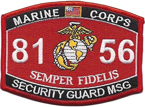 United States Marine Corps Military Occupational Specialty 8156 Security Guard MSG MOS Military Patch* Height: 3.25 inches, Width: 4.50 inches* Shape: Custom* Edging: Merrowed Edge* Iron On