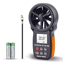 - Digital Anemometer Barometer Altimeter Handheld, for Wind Speed Temperature Wind Cold Tester w/ Relative Humidity, Altitude, Barometric Pressure Meter for Climbing Drone HVAC Specifications: Resolution:0.1 mph,0.2℉, 0.1%RH Wind speed range: 0.67 ~ 67.1 mph Accuracy of wind speed: +/- 5% of readings Wind Temp range: -10℃-45℃,14℉-113℉ Accuracy of Wind Temperature: +/- 2℃ Relative humidity: 5-95% Dew point: 0-50℃,32℉-122℉ Altitude: 0-6000 m,0-19685 Ft Wind Speed Unit Selection: m/s, Ft/min, Knots, Km/hr, Mph Wind Temperature Unit Selection: ℃/℉(Degree Celsius/Fahrenheit) More Functions: ✔Altimeter ✔Dew point ✔Wind Chill ✔Wind Temperature ✔Barometric pressure ✔Relative Humidity ✔Backlit screen ✔Max/Min/Avg ✔Manual /Auto power off ✔Low battery indication WHY BT-100WM Hand Anemometer?It’s a multifunctional, combines anemometer thermometer barometer altimeter hygrometer in one instrument.It’s a portable handheld wind gauge to keep tracking winds indoor outdoor for concrete, HVAC, vents, turbines, shooting, camping, wind chasing, etc. WHAT'S in the package? 1*Hand strap 1*Screwdriver 2*1.5V AAA Battery 1*Handy Carrying Case 1*Instruction Manual 1*BTMETER BT-100WM Digital AnemometerORDER NOW ➤ Get this incredible BT-100WM digital handheld anemometer➤ Delivery in Just 3-5 Days!