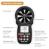 ➤【MULTIFUNCTION ANEMOMETER】BT-100WM wind speed gauge meter measures not only Wind Speed, Wind Temp, Wind Chill Indicator, but also Relative Humidity, Dew Point, Barometric Pressure and Altitude. With data log, Tripod hole for mounting, it’s ideal for outdoor activities Long Range shooting, Hunting, Sailing, Kite flying, Drone Driving, CFM air flow test. ➤【HIGH PRECISION】Digital wind meter for measure wind speed range 0.67 ~ 67.1 mph( +/- 5% accuracy) ; Wind temperature range -10~45℃,14℉-113℉(+/-2 ℃/℉);Wind meter measurement altitude from 0-19685 Ft. Resolution: 0.2 mph, 0.2℉,0.1% RH. So you can be rest assured to get fast and accurate reading. ➤【EASY TO USE】Measures different readings such as Max, Min, Average, Current Wind Speed, display in 5 units: mph, ft/min, km/h, m/s or knots. Temperature (Celsius/Fahrenheit), Elevation(M, Ft), Atmospheric pressure(inHg, hpa mbar). And LCD backlit screen makes it easy to read in day or at night. ➤【LOG THE BAROMETER DATA】This handheld wind speed meter can also log 16 groups of barometric pressure data for record, compare and analyse the relationship between temperature, humidity, and height. It’s compact pocket sized Pro anemometer for weather station, long distance shooting, HVAC testing ➤【SAVE YOUR BATTERY】Auto shutdown after 10 mins without operation, low battery indicator to remind you change the battery. 365 day quality assurance, Fast and effective 24 x 7 professional tech support, for any problem, Please get in touch with us whenever you need.